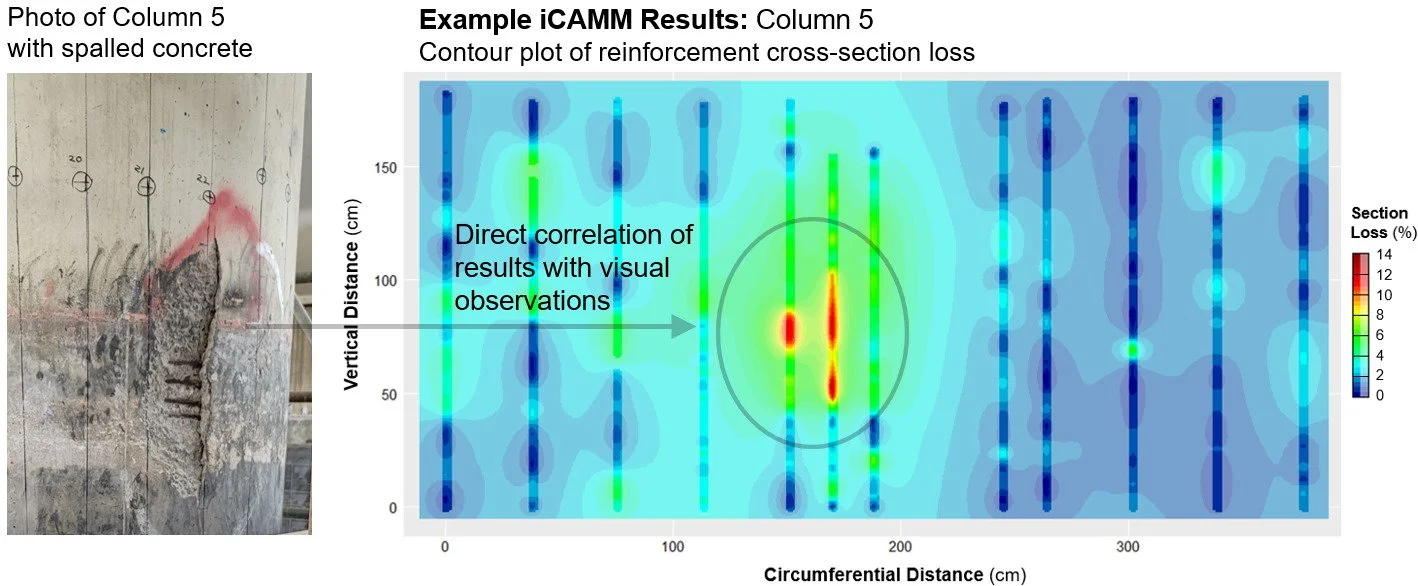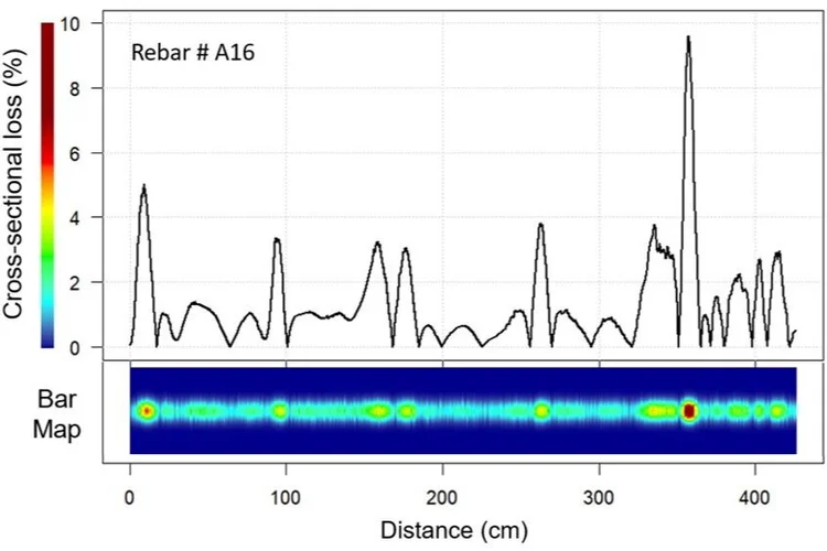 In collaboration with InspecTerra Inc., using the patented iCAMM inspection system. Non-destructive inspection and quantification of corrosion/defects in critical structural elements.